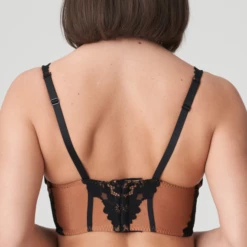 Der Abbey Road Longline BH von PrimaDonna Twist ist in der Farbe Golden Fever erhältlich. Dieser schwarze, elegante BH ist mit einem Blumenmuster aus Samt verziert, das sich über die Träger bis zur Rückseite erstreckt. Der BH ist mit einem goldenen, glänzenden Stoff überzogen. Kombinieren Sie den BH mit einem der Slips aus der Serie Abbey Road.