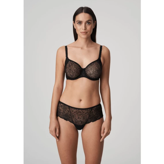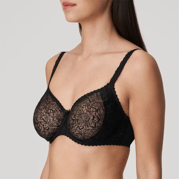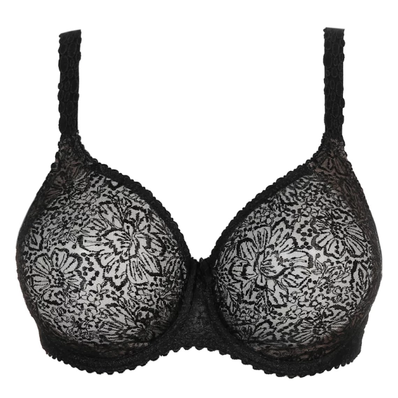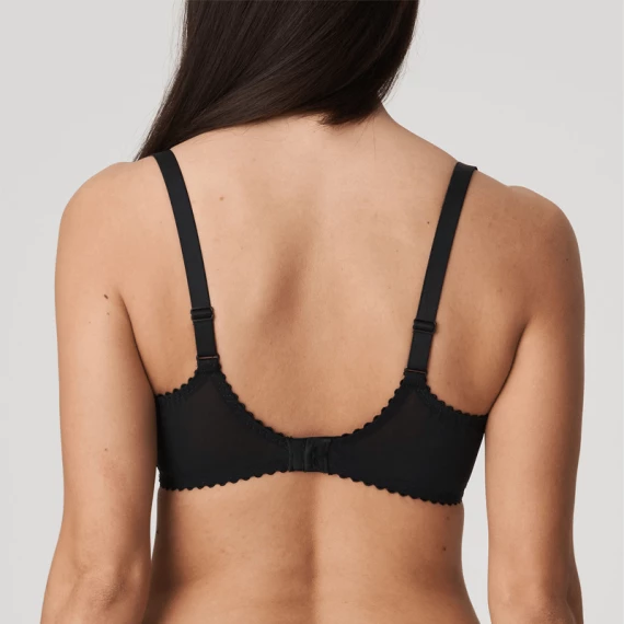 Der nahtlose BH Alara von PrimaDonna ist in der Farbe Schwarz erhältlich. Die Cups dieses schwarzen BHs sind vollständig mit einer romantischen Blumenstickerei verziert. Die Rückseite des BHs ist einfarbig. Die schöne Blumenstickerei reicht bis in die Träger. Dieser BH ist trotz der leichten und transparenten Spitzenoptik fest und stützend. Die Cups verleihen Ihren Busen eine schöne runde Form und heben ihn nach vorne , was Ihre Silhouette schlanker wirken lässt. Zwischen den Cups befindet sich eine kleine niedliche Schleife. Alara in Schwarz ist das „Kleine Schwarze“ für Ihre Dessous-Schublade!