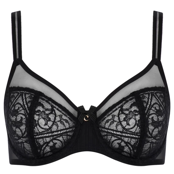 Der Alto Bügel BH von Chantelle ist in der Farbe Black erhältlich. Dieser schwarze BH hat einen schönen halbtransparenten Stoff an der Oberseite der Cups. Die Cups und die Rückseite sind mit grafischer Leavers-Spitze verziert. Die Schleife mit dem Charme zwischen den Cups vervollständigt diesen BH! Kombinieren Sie diesen Bügel BH mit einem der Slips aus der Serie Alto.
