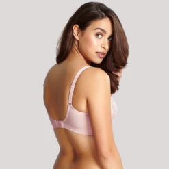 Der bügellose BH Andorra von Panache ist in der Farbe Soft Blush erhältlich. Dieser zartrosa BH ist komplett mit schöner Spitze überzogen. Zwischen den Cups befindet sich eine kleine Schleife. Kombinieren Sie diesen BH mit einem der Andorra Slips.