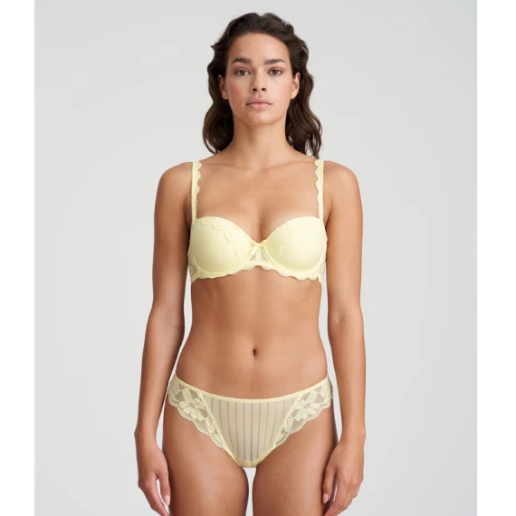 Der vorgeformte Ani Balconette BH von Marie Jo ist in der Farbe Limonada erhältlich. Dieser hellgelbe BH hebt Ihre Busen und verleiht ein hinreißendes Dekolleté. Die Mousse-Cups geben Ihren Busen eine schöne runde Form. Dieser BH verführt mit seinem weichen, gestreiften Stoff und der romantischen, geblümten Spitze. Komfort und sofortige Happy Vibes in einem. Limonada ist ein innovativer und schmeichelhafter vanillegelber Farbton. Kombinieren Sie dazu einen der passenden Slips für einen eleganten Look.