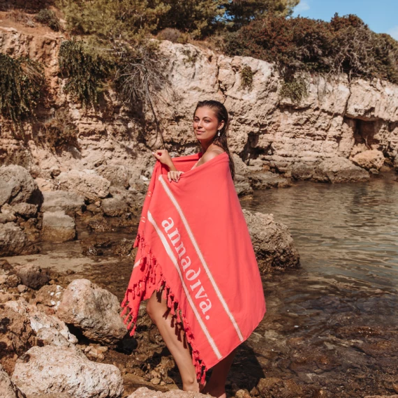 Das Annadiva Swim Strandtuch kommt in der Farbe Coral. Dieses Strandtuch in einer Korallenfarbe lässt sich perfekt mit der Sari oder Solid Kollektion von Annadiva Swim kombinieren. Das Laken ist super breit und aus dickem Material, so dass man damit am Strand liegen kann. Perfekt für ein Sonnenbad in diesem Sommer!