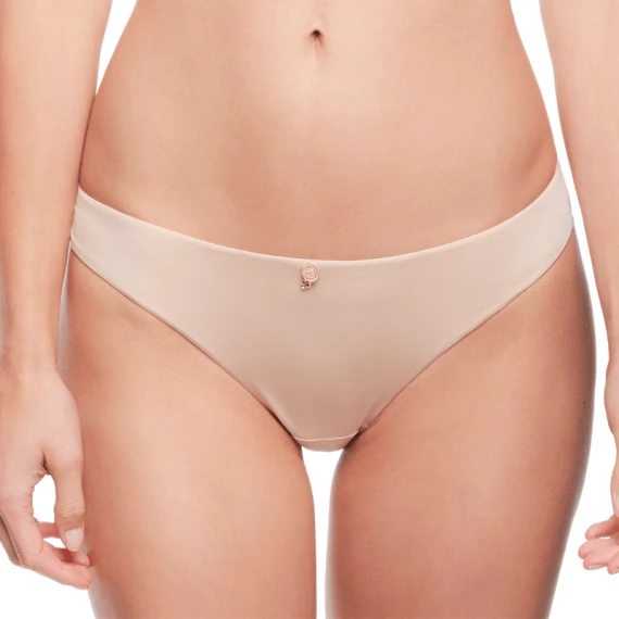 Der Ardour Brazilian Slip von Panache ist in Nude erhältlich. Die Vorderseite des Slips besteht aus glattem Stoff. Die Rückseite des Slips ist aus zauberhafter Spitze gefertigt. Auf der Vorderseite ziert ein Blütendetail mit Strassstein den Slip.
