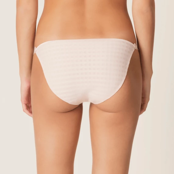Der Avero Hüftslip von Marie Jo in der Farbe Pearly Pink. Dieser hellrosa Slip ist an den Seiten recht hoch geschnitten, so dass Ihre Beine optisch länger wirken. Der Slip ist mit Blumen an den Seiten versehen.