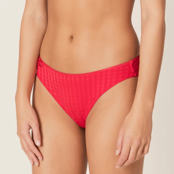 Der Avero-Rioslip von Marie Jo ist in der Farbe Scarlet erhältlich. Dieser rote Slip ist ein schöner Kompromiss zwischen Eleganz und Tragekomfort. Da der Slip an den Seiten recht hoch geschnitten ist, wirken Ihre Beine länger. Der Slip ist mit einer kleinen Blume an der Seite verziert.
