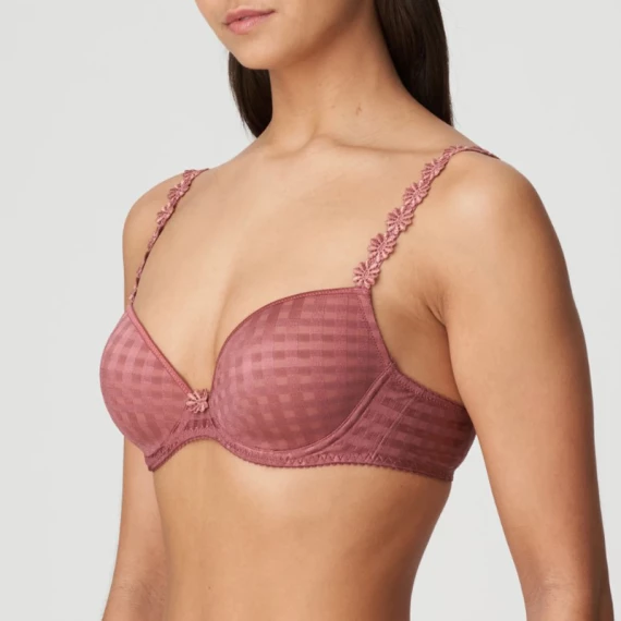 Der vorgeformte BH Avero von Marie Jo ist in der Farbe Wild Ginger erhältlich. Dieser dunkelrosa BH verfügt über nahtlose Cups, die für eine schöne runde Busenform sorgen. Der Plunge Effekt sorgt dafür, dass die Busen auf natürliche Weise angehoben und nach vorne zentriert werden. Die Schulterträger sind mit hübschen Gänseblümchen verziert. Kombinieren Sie diesen BH mit einem der Avero Slips!