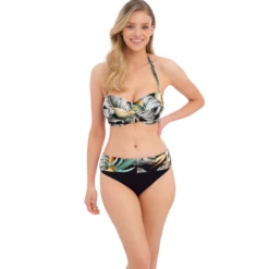 Das Bamboo Grove Bandeau Bikini Top von Fantasie Bademode ist in der Farbe Jet erhältlich. Dieses Bikini Oberteil hat ein botanisches Muster aus Palmen- und Bananenblättern in Grautönen. Die schönen Früchte wie Mango und Melone verleihen diesem Oberteil eine fröhliche Note. Das Bikini Oberteil gibt dem Busen eine schöne runde Form und hat abnehmbare Träger. Besonders schönes Detail: Dieses Oberteil hat einen verspielten Twist zwischen den Cups. Kombinieren Sie es mit dem Strandkleid und einer Bikini Hose aus der Bamboo Grove Kollektion für einen sommerlichen Strand Look!