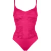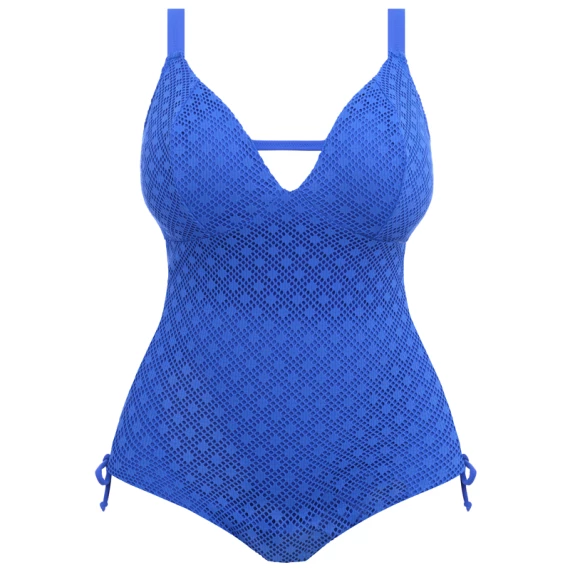 Der Bazaruto Badeanzug von Elomi Swimwear ist in der Farbe Sapphire gehalten. Dieser Badeanzug in leuchtendem Blau ist inspiriert von sonnigen Ferien und einem strahlend blauen Meer. Vollkommen sommerfest. Der Badeanzug hat keine vorgeformten Cups, für ultimativen Komfort. Unter den Cups befindet sich ein elastisches Bündchen für zusätzlichen Komfort. Außerdem ist der Badeanzug an der Seite verstellbar, so dass Sie selbst entscheiden können, wie hoch oder niedrig Sie ihn tragen möchten. Machen Sie sich bereit für den Sommer mit der Bazaruto-Kollektion!