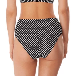 Die Beach Hut Bikinihose von Freya Bademode in der Farbe Black .Diese Bikinihose ist schwarz- weiß gestreift. Streifen machen optisch schlanker und dank des hohen Bündchens wird der Bauch kaschiert.
