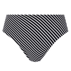 Die Beach Hut Bikinihose von Freya Bademode in der Farbe Black .Diese Bikinihose ist schwarz- weiß gestreift. Streifen machen optisch schlanker und dank des hohen Bündchens wird der Bauch kaschiert.