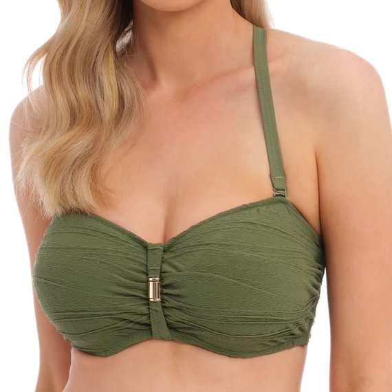 Dieses grüne Bandeau-Bikini Oberteil von Fantasie Swim ist in der Farbe Olive erhältlich. Der versteckte Bügel in diesem Bikini Oberteil sorgt für den richtigen Halt. Die roségoldenen Details machen dieses Bandeau-Bikini Oberteil komplett!