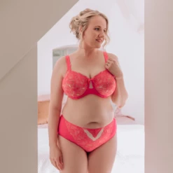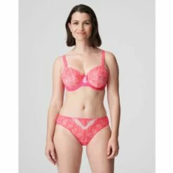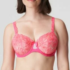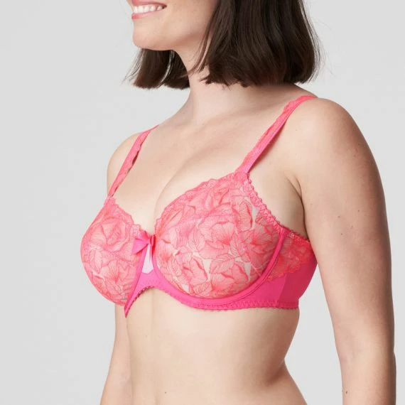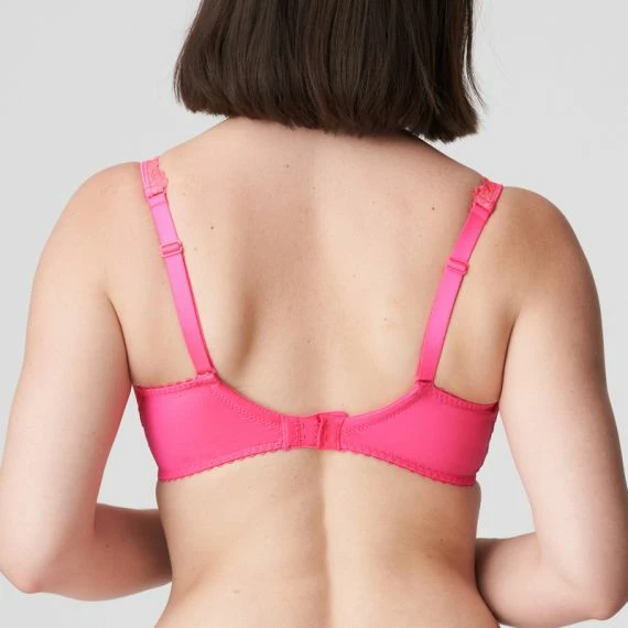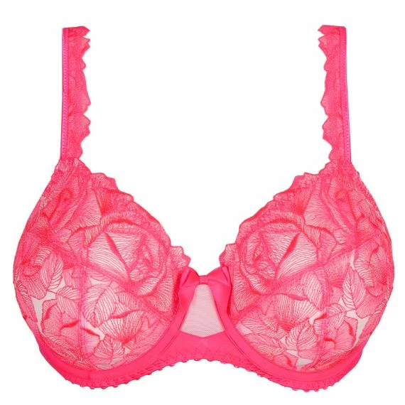 Der Bügel BH Belgravia von PrimaDonna ist in der Farbe Blogger Pink erhältlich. Dieser rosafarbene Tüll-BH ist mit einer wunderschönen, leuchtend rosa Blumenstickerei verziert. Die dreiteiligen Cups umschließen den Busen vollständig und heben ihn nach vorne. Dadurch wird der Busen zentriert und erhält eine schöne runde Form. Die Satinbänder am unteren Rand der Körbchen und an den Trägern vervollständigen diesen BH. Sehr feminin.