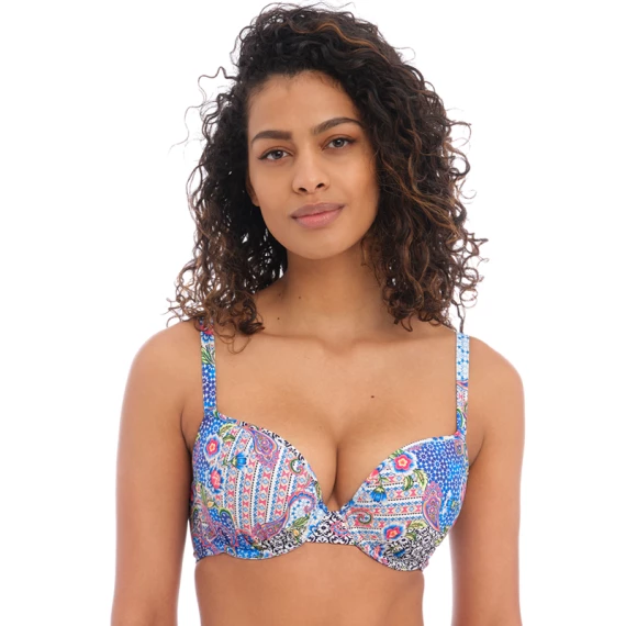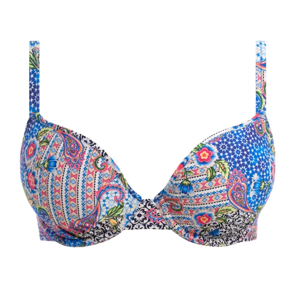 Das Boho Breeze vorgeformte Bikini Oberteil von Freya Bademode ist in der Farbe Multi erhältlich. Dieses Bikini-Oberteil hat ein schönes, von Mosaiken inspiriertes Muster mit einer Mischung aus Pastell- und leuchtenden Farben. Die Cups sind tief ausgeschnitten und sorgen für ein schönes Dekolleté. Kombinieren Sie dieses Top mit einem der Boho Breeze Bikini Hosen!