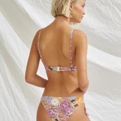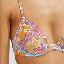 Das Boho Heat Bikini Oberteil von Watercult ist in der Farbe Sandial erhältlich. Sonnengeküsste Farbeffekte in Pink, Lavendel und Mango treffen auf energiegeladene, warme Sonnenstrahlen und Erdtöne. Das Bügel Bikini Oberteil Boho Heat hat Mousse Cups und verstellbare Träger.