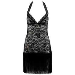 Das Boîte à Désir Babydoll Kleidchen von Aubade in der Farbe Schwarz. Dieses minimalistische und sinnliche Kleidchen ist aus verführerischer Spitze. Das Kleidchen hat am Saum verspielte Bändchen. Die Größenführung ist „one-size-fits-all“. Die Boîte à Désir Kollektion ist ein Must Have aufregender Dessous.