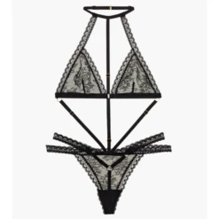 Der Boîte à Désir Body ist in der Farbe Noir erhältlich. Dieser raffinierte Body ist aus verführerischer Spitze gefertigt. Der Body ist mit einem halbtransparenten Triangel-BH und einem passenden String ausgestattet, die miteinander verbunden sind. Der Body hat verspielte Linien und sexy Stoffe, die sich auf der Rückseite des Bodys fortsetzen. Der Körper ist mit goldfarbenen Ringen versehen und in der Größe verstellbar. Das Größensystem dieser sexy Serie ist „one-size-fits-all“. Die Boîte à Désir-Kollektion von Aubade ist ein Must-Have im Bereich der anspruchsvollen Lingerie!