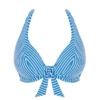 Das Carmelita Avenue Full Cup Bikinitop von Fantasie Bademode ist in der Farbe French Navy erhältlich. Das weiß-blaue Bikinitop hat einen tropischen Print mit Palmen. Das Bikinitop bietet reichlich Halt und hebt den Busen auf natürliche Weise an. Die Schulterträger verlaufen gerade über die Schulter nach hinten und sind auf der Vorderseite mit einer goldenen Perle verziert. Kombinieren Sie dieses tropische Bikinioberteil mit einem der passenden Bikiniunterteile aus der Carmelita Avenue Kollektion.