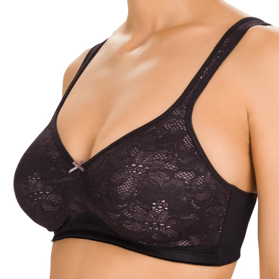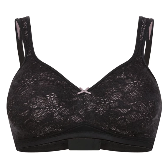 Der Chanson Bügel BH ist in der Farbe Schwarz erhältlich. Dieser schöne BH hat hellrosa Cups, die mit schwarzer, floraler Spitze besetzt sind. Dies ergibt einen spielerischen Effekt! Die Rückseite ist einfarbig schwarz. Dieser BH ist dank der Technologie des thermischen Pressens und des Simplex-Materials, mit dem sich die Cups perfekt an den Busen anpassen, äußerst komfortabel. Der hohe Elasthananteil garantiert Stabilität und Komfort. Die breiten Träger nehmen das Gewicht von Schultern und Rücken. Der BH ist mit einer Schleife zwischen den Cups verziert. Kombinieren Sie diesen BH mit einem der Slips aus der Chanson Serie.