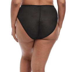 Der Charley Taillenslip von Elomi ist in der Farbe Black erhältlich. Dieser sinnliche, schwarze Slip enthält ein rautenförmiges Netzgewebe und ist an den Beinausschnitten mit einem kleinen Guipure-Spitzenrand versehen. Die etwas höhere Taille umschließt schön Ihren Bauch und die hohen Beinausschnitte lassen Ihre Beine optisch länger wirken. Die Seiten sind mit einer transparenten Blumenstickerei verziert. Dieser Slip ist sehr bequem, da die Beinausschnitte elastisch sind.