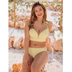 Das Longline Bikini Oberteil Checky von Annadiva Swim ist in der Farbe Citron erhältlich. Dieses gelb-weiß karierte Oberteil hat einen jungen und eleganten Look. Lieben Sie Vintage? Dann ist dieser Bikini ein Muss. Die fest geformten Cups heben und zentrieren den Busen optimal. Dieses Top ist ein schönes Longline-Modell. Super trendy! Kombinieren Sie das Oberteil mit einem der Bikini Hosen für den perfekten Sommerlook. Cute & classy!