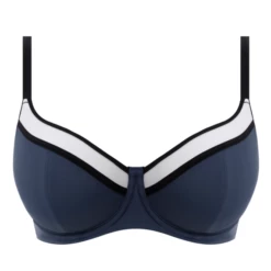 Das Colour Crush padded Bikini Oberteil von Freya Swimwear ist in der Farbe Ink gehalten. Dieses Bikini Oberteil hat eine dunkelblaue Farbe mit den Umrissen von schwarzen Paspeln, die sich verengen. Kombinieren Sie dieses Bikini-Oberteil mit einem der Oberteile aus der Colour Crush-Kollektion für einen dezenten, schicken Look.