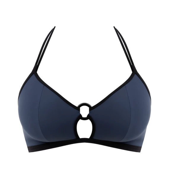 Das Colour Crush Triangel Bikini Oberteil von Freya Swimwear ist in der Farbe Ink erhältlich. Dieses Bikini Oberteil ist dunkelblau und mit schwarzen Paspeln umrandet. Dieses Bikini Oberteil hat einen Ring in der Mitte der Körbchen, der mehr von Ihrem Busen freigibt. Kombinieren Sie dieses Bralette-Bikini Oberteil mit einem der Oberteile aus der Colour Crush Kollektion für einen dezent-schicken Look.