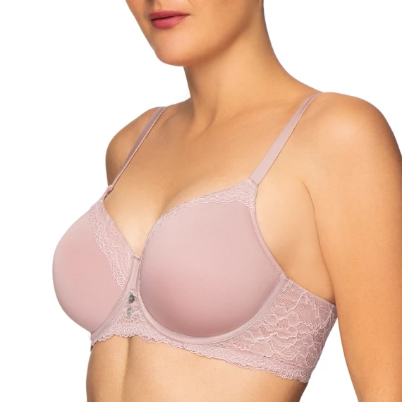 Der Comfy Liasion Spacer BH von Conturelle ist in der Farbe Macaron erhältlich. Dieser rosa/taupefarbene Bügel BH ist oben und unten an den Cups mit Spitze verziert, ebenso wie das Band. Der romantische Bügel BH hebt die Busen nach vorne und zentriert sie für eine perfekt abgerundete Form. Ein bequemer BH aus weichem Material. Kombinieren Sie den Bügel BH mit einem der Slips aus der Kollektion!