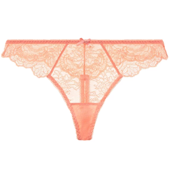 Der Danse des Sens String von Aubade ist in der Farbe Melon erhältlich. Dieser wunderschöne String ist komplett mit sexy rosa Leavers Spitze überzogen. Sowohl die Vorder- als auch die Rückseite ziert eine kleine Schleife. Kombinieren Sie diesen schönen String mit einem BH aus der Danse des Sens Kollektion.