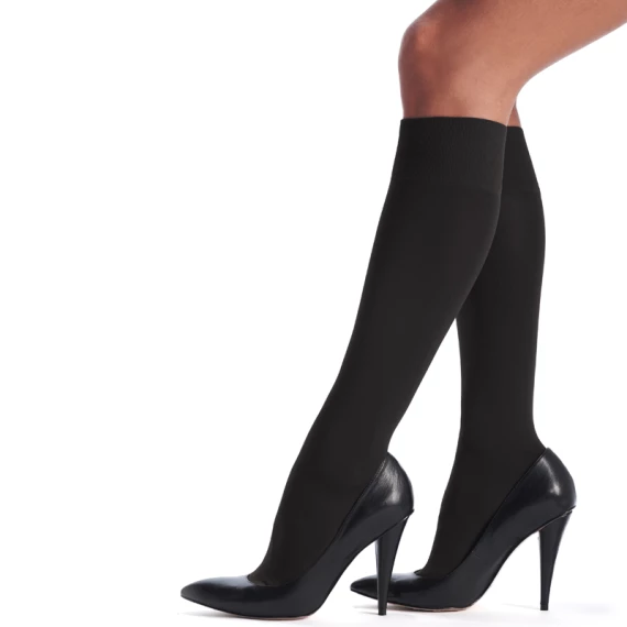 Die Different Kniestrümpfe 80 Denier in der Farbe Singapour sind dunkelgraue Strümpfe mit einem breiten anatomischen Bündchen welches perfekt um die Wade anschließt. Dank dieser perfekten Passform sind die Strümpfe unsichtbar und daher perfekt unter einer engen Jeans.