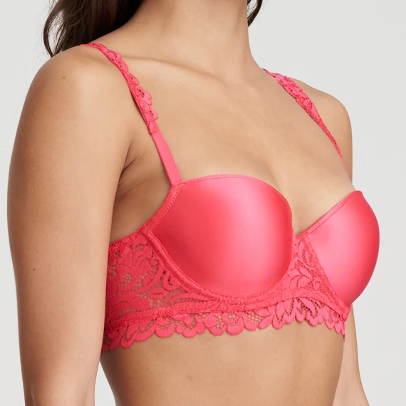 Der vorgeformte Elis-Balconette-BH von Marie Jo ist in der Farbe Spicy Berry erhältlich. Der rosafarbene Balconette mit glatten, vorgeformten Cups überrascht mit sinnlicher Spitze an Rücken und Trägern. Sehr schön zum Vorzeigen unter einem Sommerkleid. Dieser beliebte Balconette-BH kombiniert ein sinnliches, tieferes Dekolleté mit dem Komfort vorgeformter Cups. Der Hit für den Sommer!