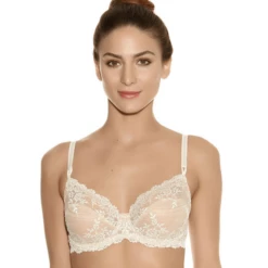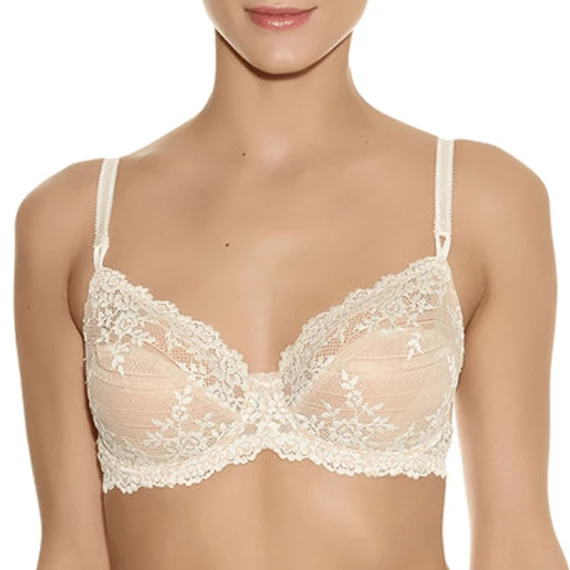 Der Embrace Lace Bügel-BH von Wacoal in der Farbe Nude. Dieser hautfarbene BH hat sowohl an der Oberseite als auch auf der Unterseite eine Blumenstickerei. Dies rundet das sinnliche Design ab. Kombinieren Sie diesen BH mit einem passenden Slip aus der Embrace Lace Kollektion.