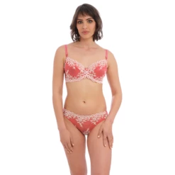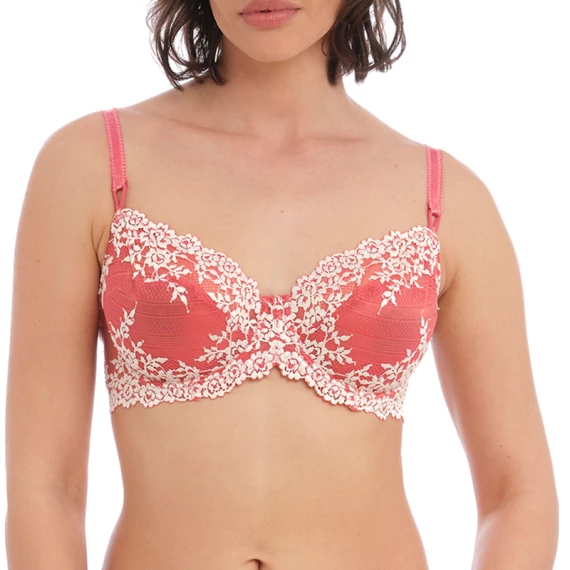 Der Embrace Lace Bügel BH von Wacoal ist in der Farbe Faded Rose/White Sand erhältlich. Dieser rosafarbene BH ist oben und unten mit einer floralen Stickerei versehen. Das macht den Luxus-BH komplett!