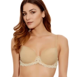 Der Embrace Lace Vorgeformter BH von Wacoal in der Farbe Nude. Dieser hautfarbene, sexy BH ist aus weichem Material welches einen hohen Tragekomfort garantiert. Rundum die Körbchen ist der Bh mit elfenbeing=farbener Blumenstickerei verziert. Dies rundet das sinnliche Design dieses BHs ab.