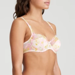 Romantische, zarte Blumenstickereien schmücken die Mousse-Cups dieses Balconettes. Prächtig und üppig! Die frischen Aquarellfarben wirken sommerlich und zart. Und ist Ihnen die raffinierte Stickerei auf den Trägern schon aufgefallen? Präsentieren Sie! Üppige Blumenstickerei in sanften Aquarellfarben auf sommerlichem Hellrosa.