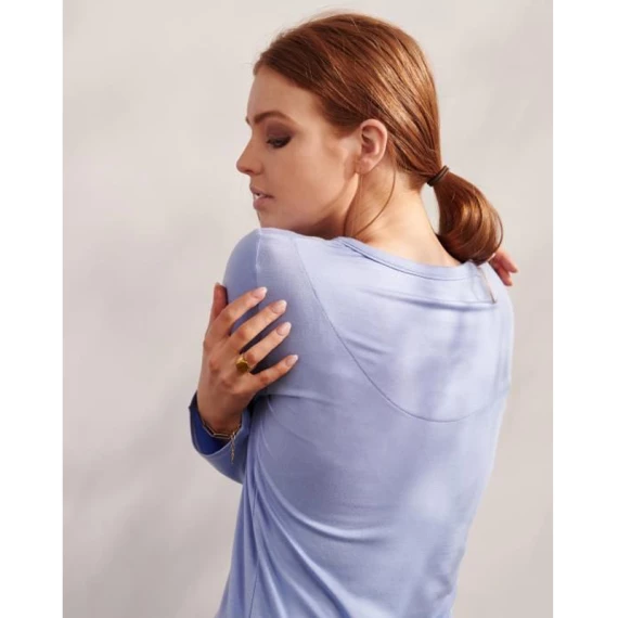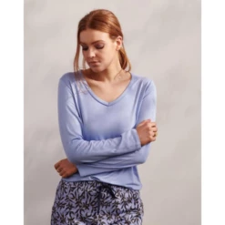 Das Eva Uni Pyjama Shirt von Essenza ist in der Farbe Lavendel erhältlich. Dieses lavendelblaue Langarmshirt hat einen kleinen V-Ausschnitt, ist geschmeidig und fühlt sich wunderbar weich an. Das Shirt besteht aus Modal, einem natürlichen, pflanzlichen Material, das aus dem Zellstoff von Buchen hergestellt wird, die in speziellen, nachhaltig bewirtschafteten Wäldern in Europa wachsen. Ein bequemes und nachhaltiges Pyjama Shirt!