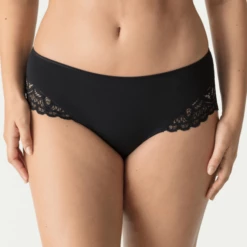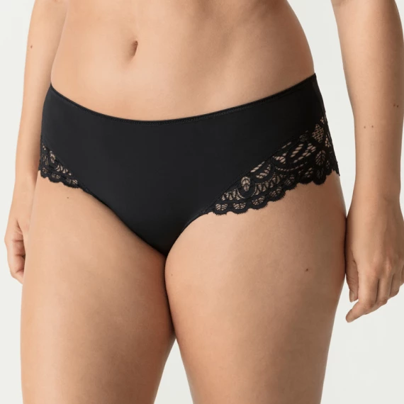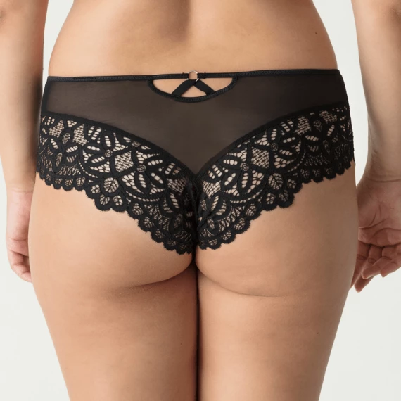 Die First Night Hotpants von PrimaDonna Twist in der Farbe Black. Diese schwarze Hotpants ist vorne einfarbig schwarz, hinten ist sie aus schwarzem Mesh-Stoff. Die verführerische Spitze verleiht eine sexy Note. Die Hotpants gewährt einen Blick auf den Po! Kombinieren Sie diese Hotpnats mit dem passenden First Night BH!