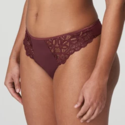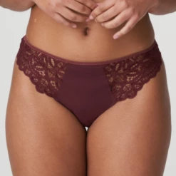 Der First Night String von PrimaDonna Twist ist in der Farbe Merlot erhältlich. Dieser lilafarbene String ist auf der Vorderseite einfarbig. Der String ist an den Hüften mit verführerischer Spitze verziert. Die Rückseite ist aus einem lilafarbenen Mesh-Stoff gefertigt. Super verführerisch!