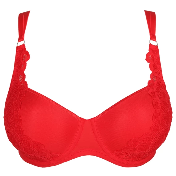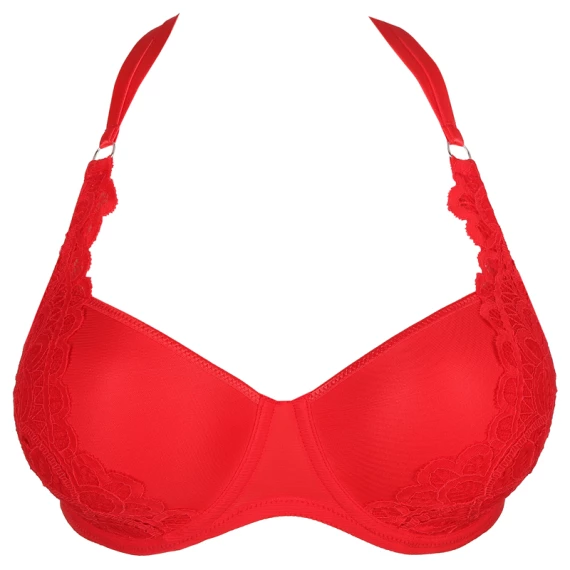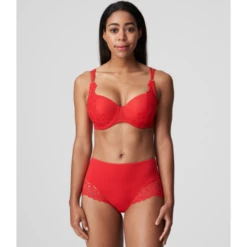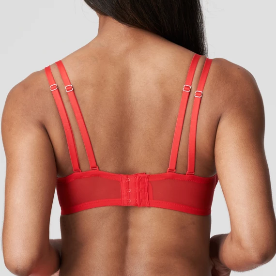 Der First Night Balconette BH von PrimaDonna Twist kommt in der Farbe Pomme d’Amour. Dieser rote BH ist an den Seiten der Cups mit schöner Spitze verziert, die teilweise in die Träger übergeht. Die Träger gehen hinten in 2 verspielte Riemen über und können sowohl gerade als auch quer getragen werden. Die Rückseite ist aus einem halbtransparenten Netzstoff gefertigt, der für einen sinnlichen Touch sorgt! Super verführerisch und unsichtbar unter Weiß: Pomme d’Amour ist ein feurig roter Sommerfarbton.