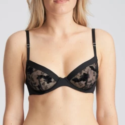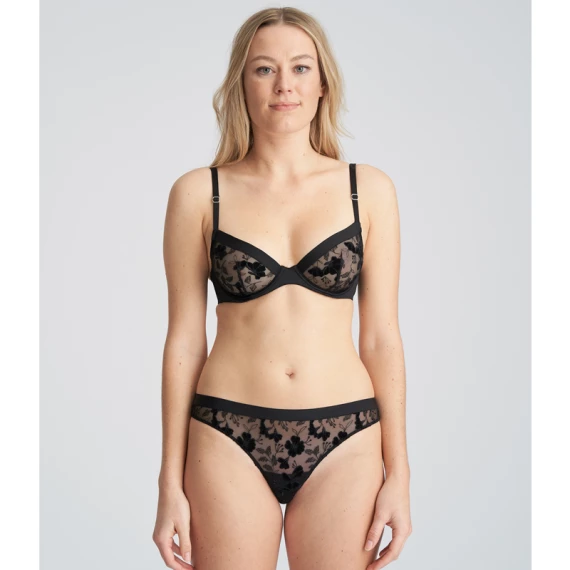Der Gloria Bügel BH von Marie Jo ist in der Farbe Black erhältlich. Der Bügel BH bietet den besten Halt und Komfort. Es ist seit Jahren ein Hit in der Marie Jo Kollektion. Dieser BH ist mit einem raffinierten, edelen Blumenmotiv verziert und die enganliegenden Bänchen betonen das Dekolleté. Samt und Stickerei verschmelzen in diesem schönen BH, zeitlos und schick!