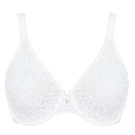 Der Halo Lace Bügel BH von Wacoal ist in der Farbe Ivory erhältlich. Dieser weisse BH ist mit luxuriöser Spitze mit einem Blüten Muster verziert. Die nahtlosen Cups geben Ihren Busen eine natürliche Form und guten Halt. Zwischen den Cups befindet sich eine dekorative Schleife.