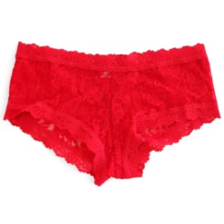 Hanky Panky Boyshort in Rot. Diese schöne Short aus herrlich weicher, elastischer Spitze sollte in Ihrem Kleiderschrank nicht fehlen. Die Shorts sind unter enger Kleidung völlig unsichtbar. Durch die Verwendung von schöner, weicher, elastischer Spitze sind die Shorts sehr angenehm zu tragen. Diese Boyshorts und andere passende Unterwäsche gibt es bei Annadiva in vielen Farben. Diese Shorts fallen groß aus. Wir empfehlen Ihnen, eine Größe kleiner zu bestellen als Sie es von anderen Marken gewohnt sind.