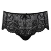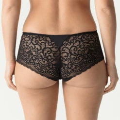 Die I Do Hotpants von PrimaDonna Twist sind in der Farbe Schwarz erhältlich. Diese schwarzen, eleganten Hotpants sind aus wunderschöner Spitze gefertigt. Die Hotpants sind transparent und auf der Rückseite befindet sich ein kleines Dreieck aus einem glänzenden Satinstoff. Die Hotpants sitzen hoch auf der Hüfte und verdecken teilweise das Gesäß.
