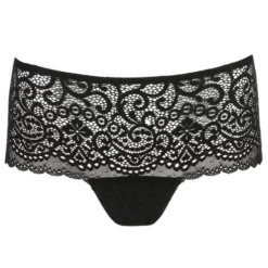 Die I Do Hotpants von PrimaDonna Twist sind in der Farbe Schwarz erhältlich. Diese schwarzen, eleganten Hotpants sind aus wunderschöner Spitze gefertigt. Die Hotpants sind transparent und auf der Rückseite befindet sich ein kleines Dreieck aus einem glänzenden Satinstoff. Die Hotpants sitzen hoch auf der Hüfte und verdecken teilweise das Gesäß.