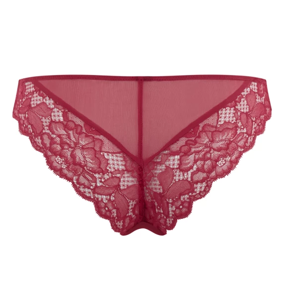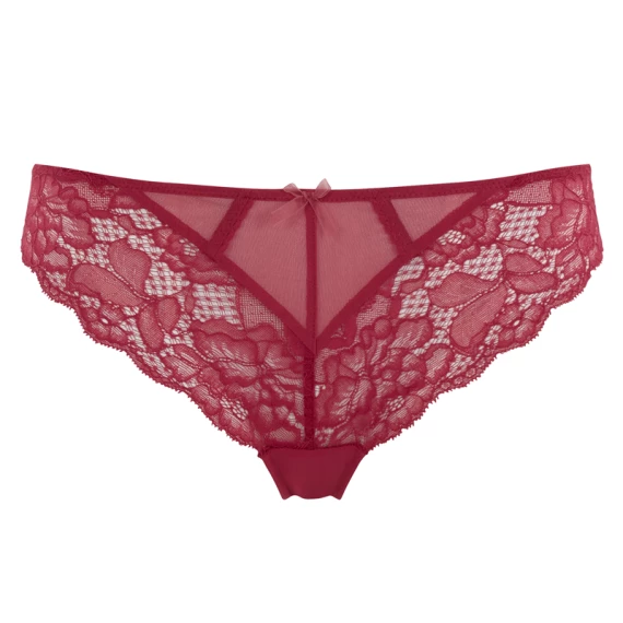 Der Imogen Slip von Panache ist in der Farbe Electric Magenta gehalten. Dieses dunkelrosa Slip ist mit schöner Spitze verarbeitet, die einen schönen Kontrast bildet. Die Rückseite des Slips ist aus durchsichtigem Mesh-Stoff gefertigt. Auf der Vorderseite ist eine kleine Schleife angebracht. Kombinieren Sie den Slip mit dem Balconette BH Imogen!