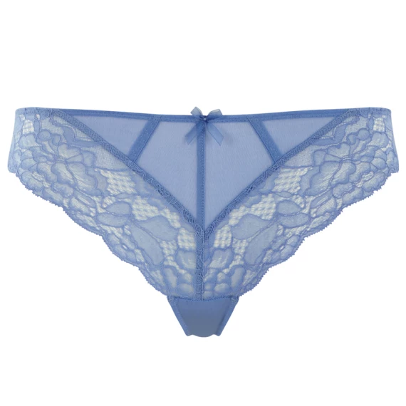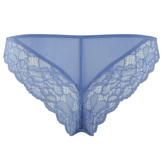 Der Imogen Slip von Panache ist in der Farbe Cornflower Blue gehalten. Dieser blaue Slip ist mit einer schönen Spitze versehen, die einen schönen Kontrast bildet. Die Rückseite des Slips ist aus durchsichtigem Netzmaterial gefertigt. Auf der Vorderseite ist eine kleine Schleife angebracht. Kombinieren Sie den Slip mit dem Balconette BH Imogen!