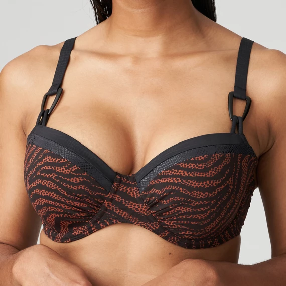 Das Issambres Balconette Bikini Oberteil von PrimaDonna Swim ist in der Farbe Schwarz erhältlich. Dieses Bikini Oberteil besticht durch die trendige Kombination aus einem warmen Rostton und einem schwarzen Animal-Print. Der dezent glänzende Stoff fängt das Sonnenlicht ein! Dieses trendige Bikini Oberteil hat die gleiche Passform wie die PrimaDonna BHs und bietet den gleichen Komfort und Halt. Die festen Mousse-Cups heben und zentrieren Ihren Busen. Die Träger können gerade, quer oder geteilt getragen werden. Kombinieren Sie das Bikini Oberteil mit einem der Bikini Hosen aus der Kollektion Issambres! Animal-Print ist immer eine stilvolle Art, ein Zeichen zu setzen.