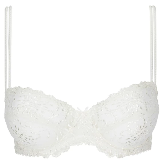 Der Jane Balconette-BH von Marie Jo in der Farbe Natur. Dieser hautfarbene BH hat eine zierliche romantsiche Blumenstickerei. Das Modell ist etwas tiefer geschnitten und bietet damit mehr offenes Decollete. Daher eignet sich dieser Bh ideal unter tief ausgeschnittener Kleidung. Ideal für Frauen mit einer weicheren Oberbrust oder für jede die ein sinnliches Decollete möchte.