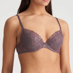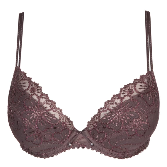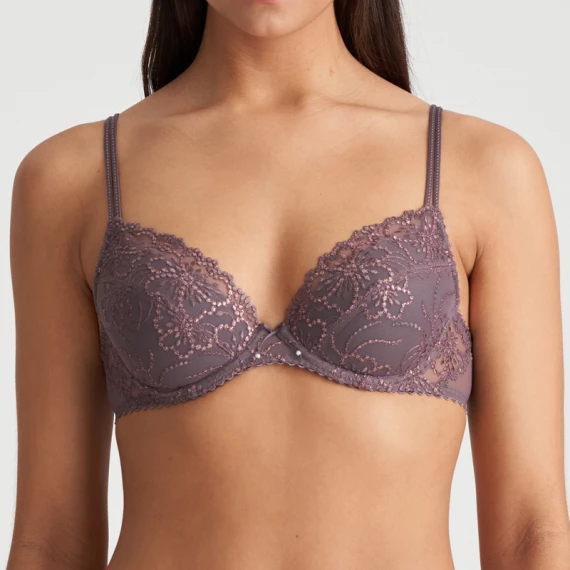Der Jane Push-up-BH von Marie Jo ist in der Farbe Candle Night erhältlich. Dieser violette BH ist mit einer raffinierten, romantischen Blumenstickerei verziert. Die Stickerei hat ein leichtes florales Muster, das an die Konturen einer eleganten Perlenkette erinnert. Die Körbchen dieses BHs heben Ihre Busen schön an und zentrieren sie nach vorne.