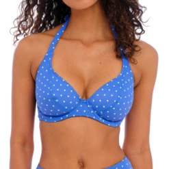 Das Jewel Cove Neckholder Bikinitop von Freya Bademode ist in der Farbe Azure erhältlich. Dieses blaue Bikinitop hat einen trendigen Karodruck. Die Cups sind tief ausgeschnitten und heben den Busen dezent an. Das verleiht Ihnen ein schönes Dekolletee!