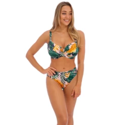 Das Jungle Falls Full Cup Bikinitop von Fantasie Bademode ist in der Farbe Multi erhältlich. Dieses rosafarbene Bikinitop hat einen schönen, bunten tropischen Print. Der Twist an den Cups macht dieses Oberteil besonders schmeichelhaft. Außerdem bedeckt dieses trendige Oberteil die Busen vollständig und zentriert sie schön. Kombinieren Sie es mit einer der passenden Hosen für einen sommerlichen Look.